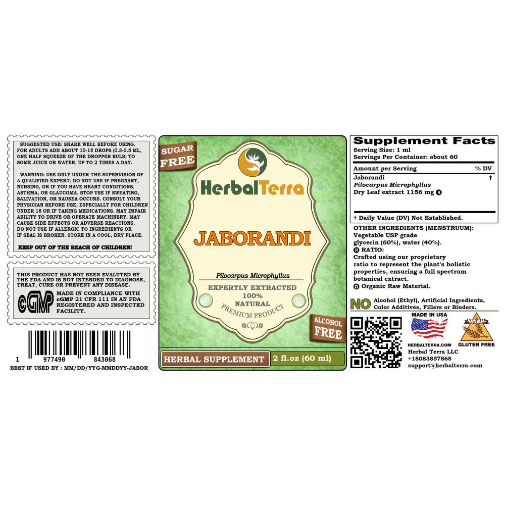 - Super concentrated Jaborandi tincture: dry plant material / menstruum ratio is 1:3! Extraction rate: 1 ml of extract is equal to about 270-330 mg of dried herb!
